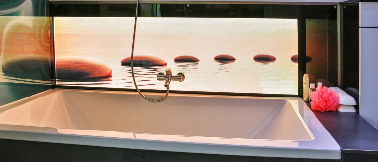 Mit Ihrem Wunschmotiv bedruckte leuchtende Duschrückwände, bieten Ihnen ein neues Wohngefühl.