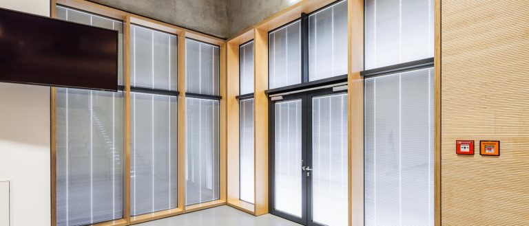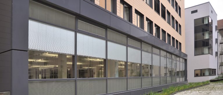 Glas mit Beschattung, Tageslichtlenkung und Blendschutz