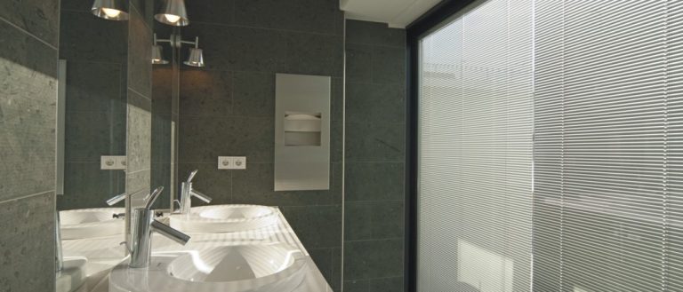 Hocheffizienter Sichtschutz ‚Made in Germany‘ bietet Privatsphäre und hält neugierige Blicke von außen durch maximale Neigung der Lamellenwinkel ab. Setzen Sie Akzente durch eine unauffällige Integration der Jalousienisoliergläser in Ihre Fassade.